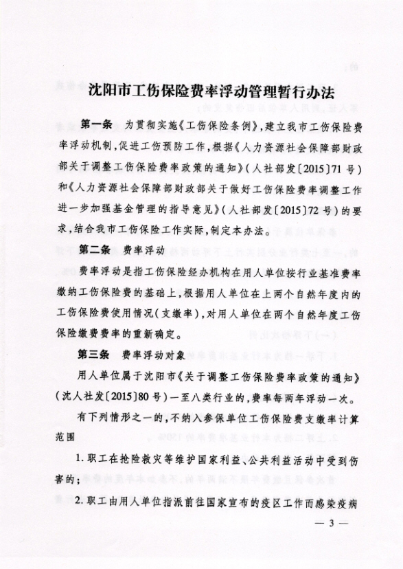 關于印發《沈陽市工傷保險費率浮動管理暫行辦法》的通知
