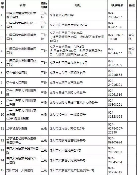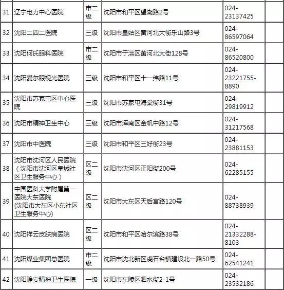 沈陽(yáng)市省內(nèi)異地就醫(yī)聯(lián)網(wǎng)結(jié)算定點(diǎn)醫(yī)療機(jī)構(gòu)名單